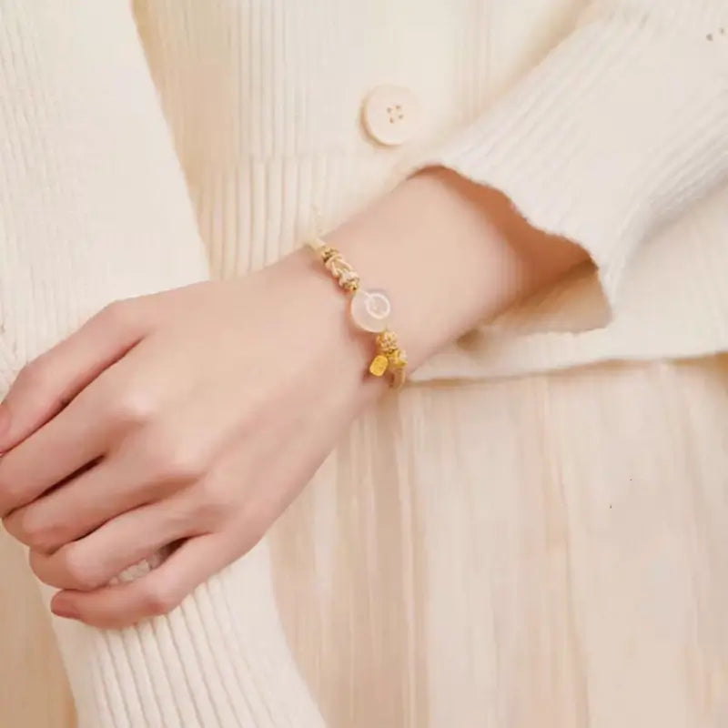- Caractéristiques : Agate blanche naturelle (chaude et lisse) ; pendentif de bénédiction plaqué or 925 (résistant à la décoloration, éclat luxueux) ; 8 options de couleur (polyvalent pour différentes tenues) ; cordon tressé multicolore (robuste, doux, durable) ; style frais et jeune.
