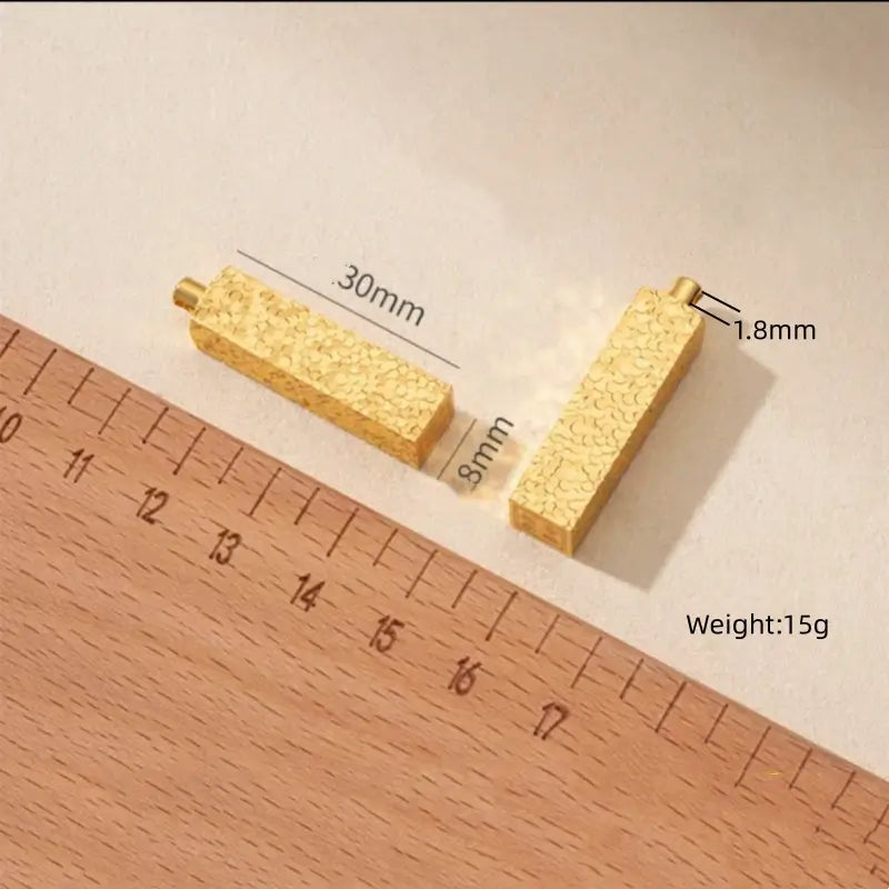 - Style C : Pendentif barre d'or 30×8 mm, cordon en cuir 2 mm d'épaisseur, 50 cm de long ;
