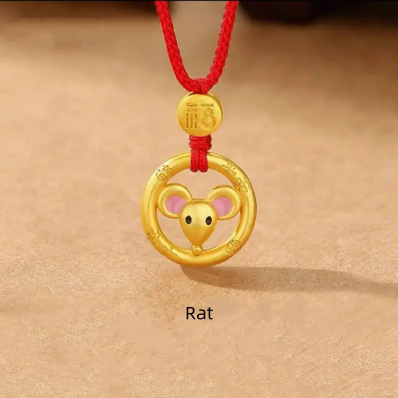 中国の十二支 925 シルバーメッキ ゴールド ピースバックル ペンダントネックレス | 祝福の赤い紐 十二支 誕生日プレゼント