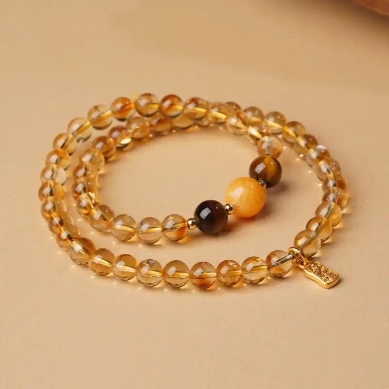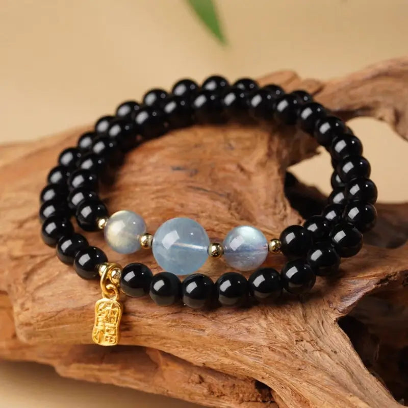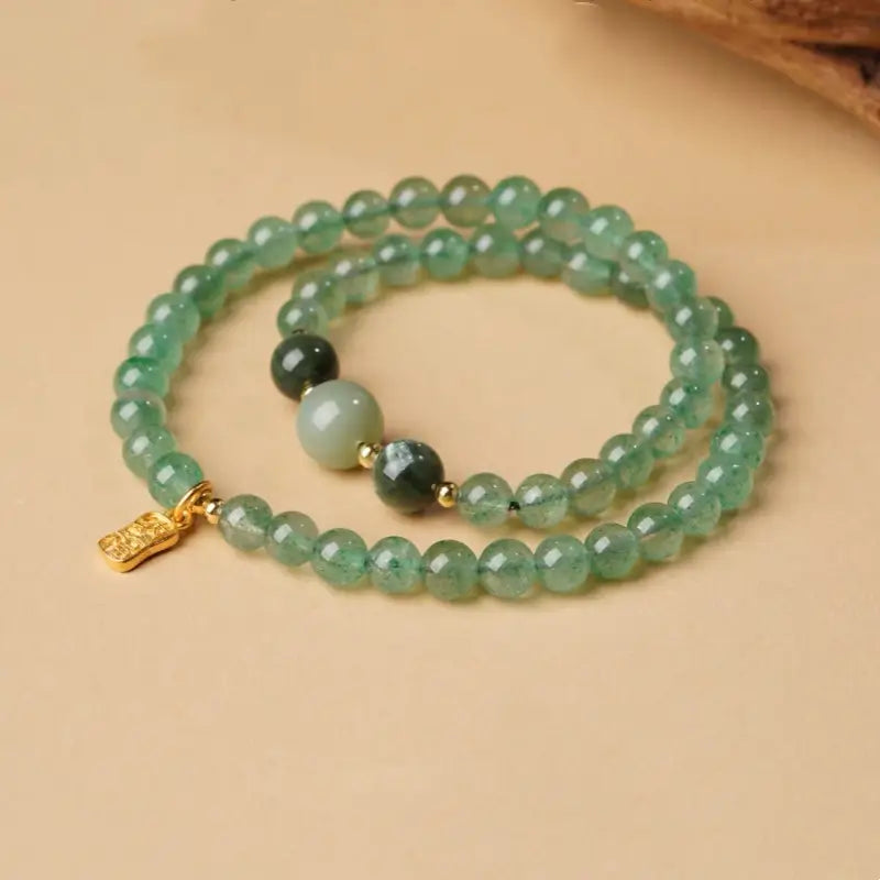 五行天然水晶ブレスレット|ダブルラップ、18Kゴールド祝福タグ、五行バランス、ヒーリングエネルギータリスマン