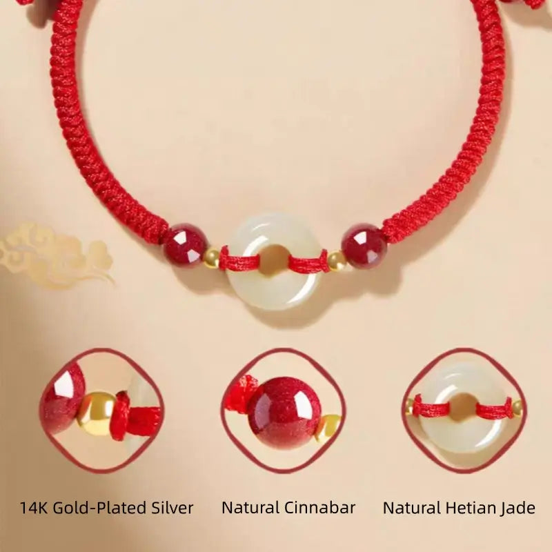 普陀山御神翡翠ブレスレット✨ 辰砂ビーズ、14K銀メッキ、調節可能な金剛紐、3色展開、幸運のお守り。今すぐ購入!