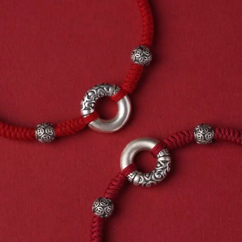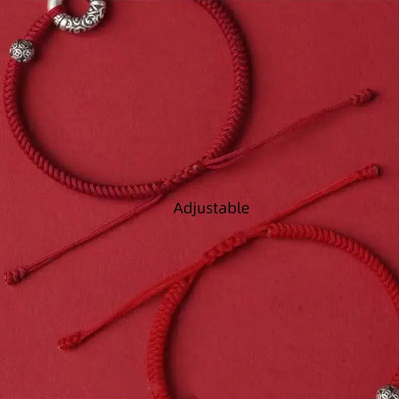 - Material: 999 fine silver (peace buckle & fortune beads), braided cord (red/black/dark red) — skin-friendly, durable, fade-resistant.