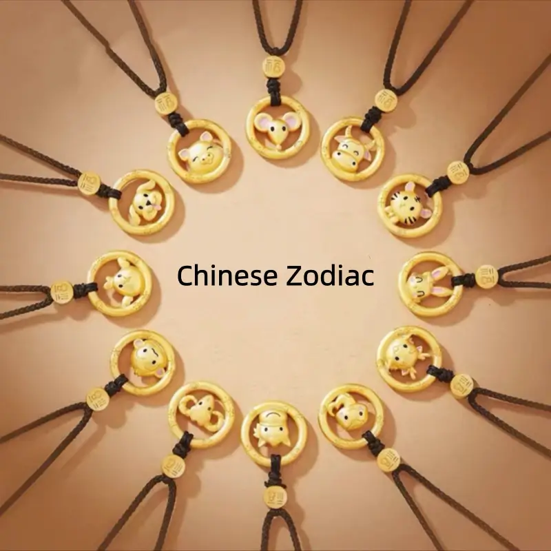 Chinese Zodiac 925 Silver Plated Gold Pendant ✨ Cute Zodiac Peace Buckle, Elegant Black Cord, Lucky Gift for Zodiac Year & Birthday. Shop Now!