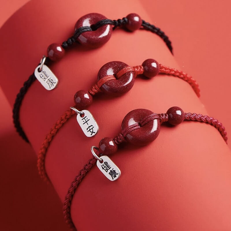 Bringing good luck and blessings: Red symbolizes joy and auspiciousness in China. The bright red color of cinnabar implies "being blessed with great fortune" (a phrase meaning good luck comes one after another). Wearing a cinnabar bracelet is thought to attract wealth, gather blessings and improve one's fortune. It is especially suitable for wearing in one's zodiac year (the year corresponding to one's birth sign in the Chinese zodiac) or important festivals.