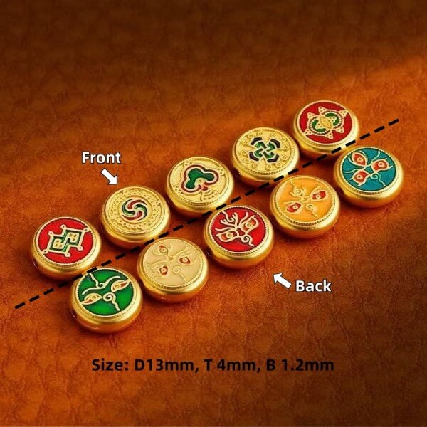 The Five-colored Wealth Gods correspond to the Five Elements (Wuxing) in traditional Chinese culture: gold (white), wood (green), water (black), fire (red) and earth (yellow). They can make up for the deficiencies in the wearer's destiny (based on the concept of fate in traditional Chinese culture) and promote the balance of fortune.