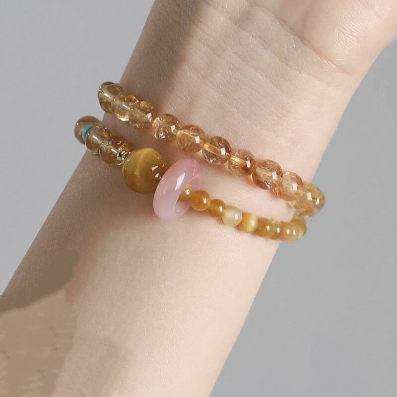 Citrine is suitable for those striving in the workplace and entrepreneurs. It is also appropriate for individuals who are in a low state of energy, lack motivation, have an introverted personality and are hesitant to express themselves, or need to reignite their vitality. It complements casual daily outfits or light luxury fashion styles and suits both men and women. It is versatile and can brighten up any overall look, regardless of the occasion.