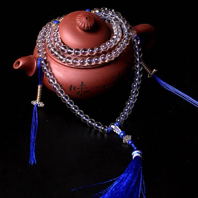LuckyCharms Natural White Crystal 108 Mala Beads Bracelet