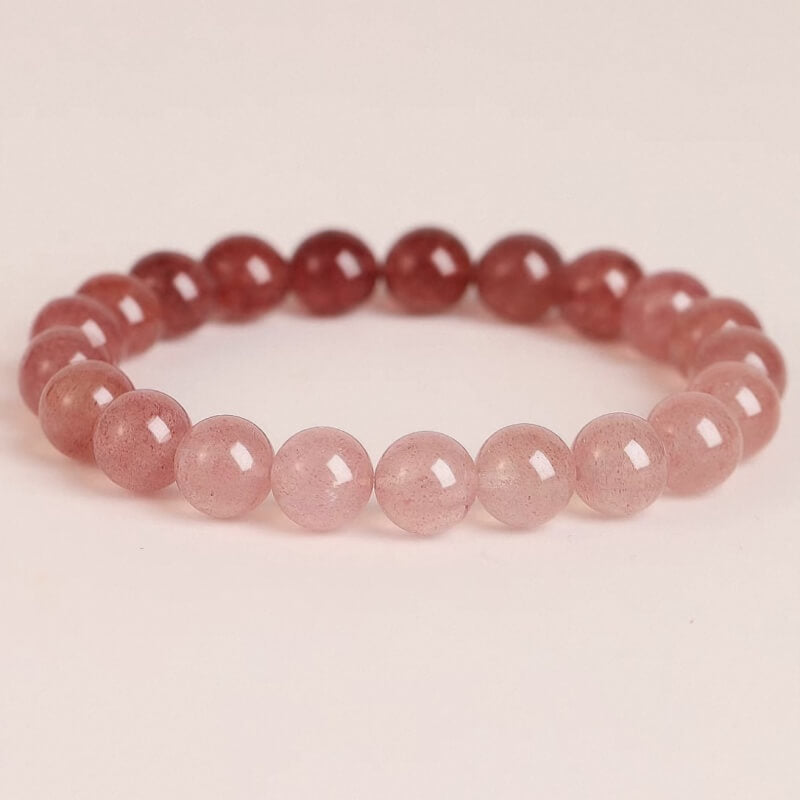 Among all strawberry quartz jewelry, bracelets are the most popular choice among girls. Strawberry quartz is symbolically associated with attracting "positive romantic connections" (referring to genuine, wholesome romantic relationships). It is believed to help one find their future significant other, and also represents confidence, courage, decisiveness, and proactivity. Additionally, it carries the implication of enhancing romantic luck and bringing abundant good fortune.