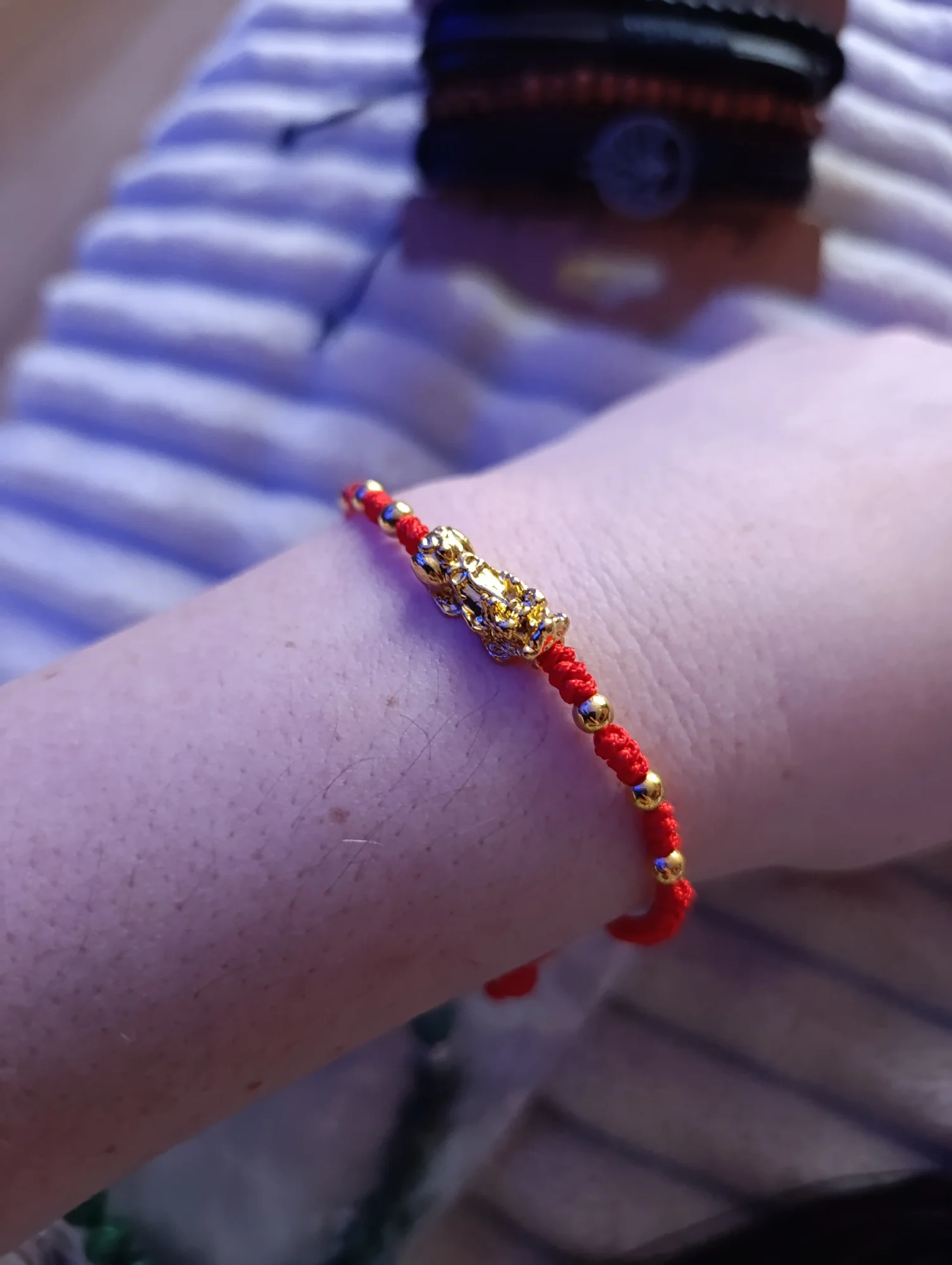 Red is generally associated with happiness, vitality, and prosperity, and red strings amplify this kind of energy. Many wearers believe that it will bring good luck to their lives - perhaps a great opportunity at work, a pleasant surprise with friends, or even a day where everything goes smoothly. It serves as a small, tangible symbol of hope - you can glance at it and be reminded to stay open to positive moments, whether big or small.